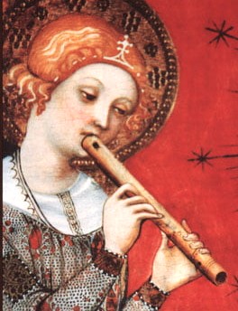 Recorders were a key medieval woodwind instrument, as depicted in this detail from a Spanish altarpiece, La Virgen con el Niño, dated to c.1385.