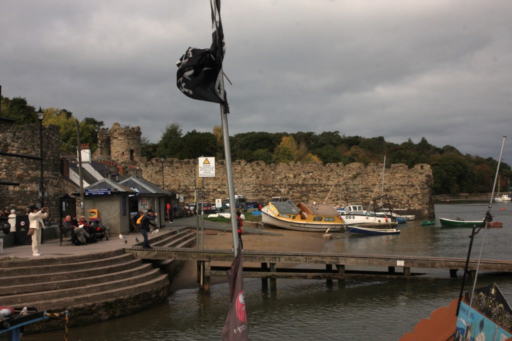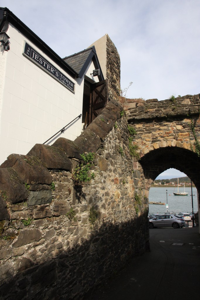From here, thankfully it’s all downhill while we look across Conwy’s ancient grid of busy streets. The walkway follows a straight line down towards the quayside with its spur wall stretching out into the sea, designed to act as both an extra defensive feature and a breakwater. From here, although the wall turns back towards the castle the walkway does not, so we drop down another flight of steps to stroll along the quayside with its various attractions, (including the smallest house in Great Britain, which is well worth a look, and it won’t take long!) and the twin-towered Lower Gate, through which various goods were once taken into the town from ships docking in the harbour.